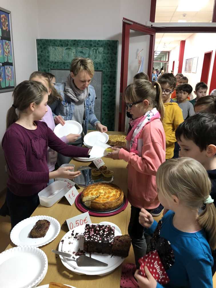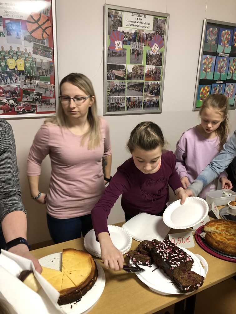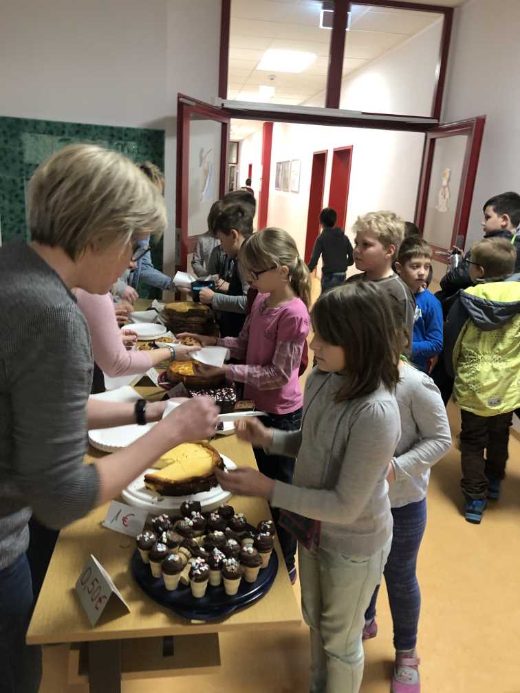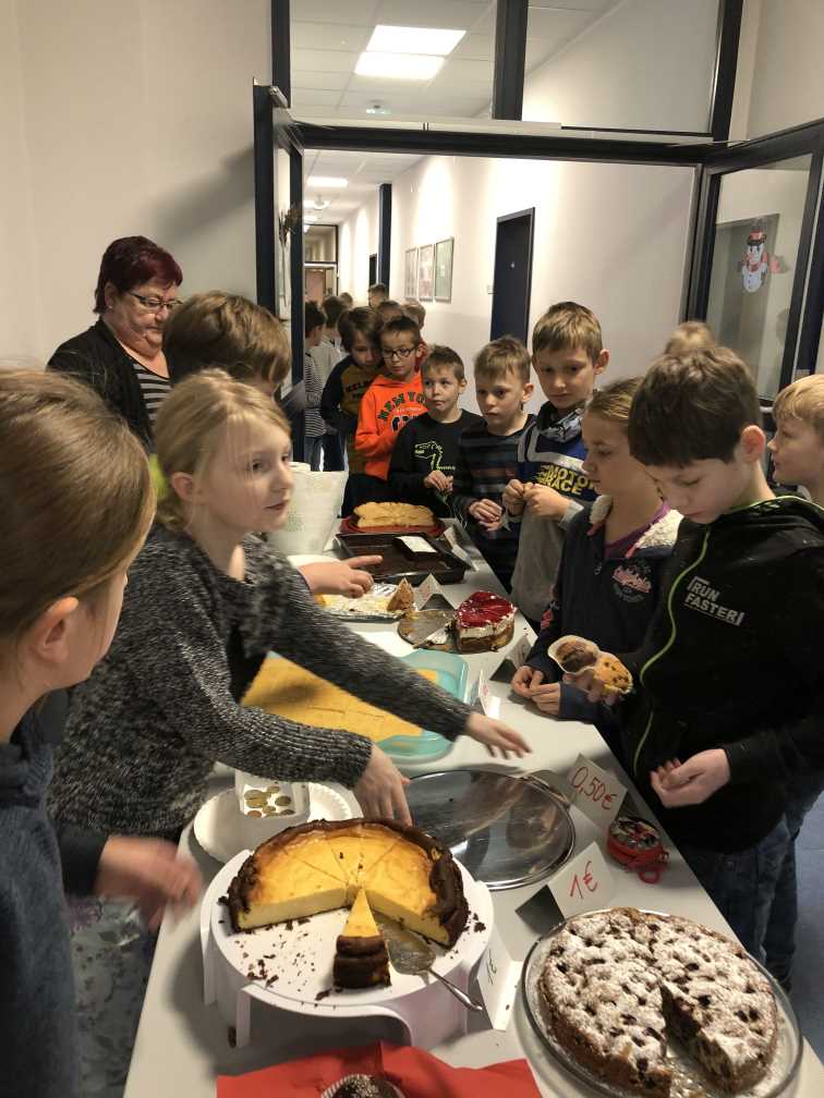 Gleich zu Beginn des neuen Jahres hat sich der Vorstand des Fördervereines unserer Grundschule etwas ganz Besonderes einfallen lassen. Alle Mitglieder des Vereines waren aufgerufen, Kuchen zu backen. Dieser wurde dann am Donnerstag, dem 16.01.20 in der Grundschule in der Frühstückspause verkauft. Die Kinder freuten sich auf die verschiedenen lecker aussehenden Kuchen und warteten in langen Schlangen stehend geduldig, bis sie an der Reihe waren.