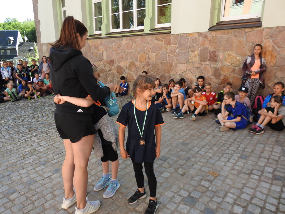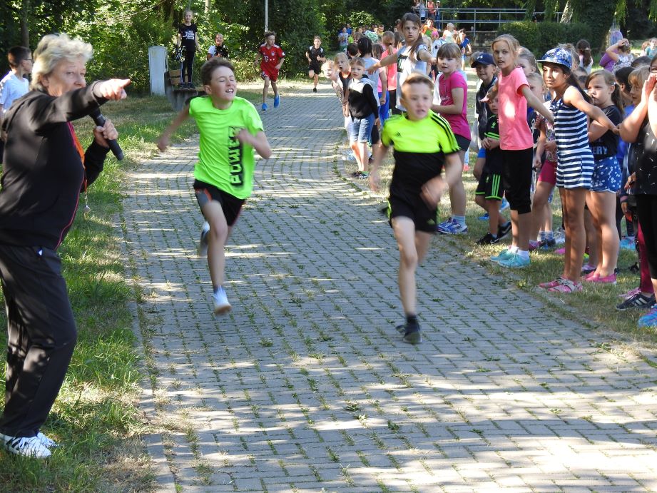Traditionell führten wir am vorletzten Tag vor den Sommerferien unseren Lauf auf dem Werder bei herrlichem Wetter durch. Nach der Erwärmung ging es los. Alle Kinder zeigten großen sportlichen Ehrgeiz und kämpften tapfer um die Medaillen, die vom Förderverein unserer Grundschule gesponsert wurden.